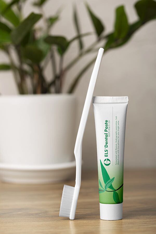 東南アジアで古くから親しまれてきたハーブ「センシンレン」や、ミネラル、海塩などの天然成分を配合。合成甘味料/香料、界面活性剤、合成着色料、防腐剤不使用で無添加にこだわっています。清掃剤には、歯の主成分と同じハイドロキシアパタイトを使用。